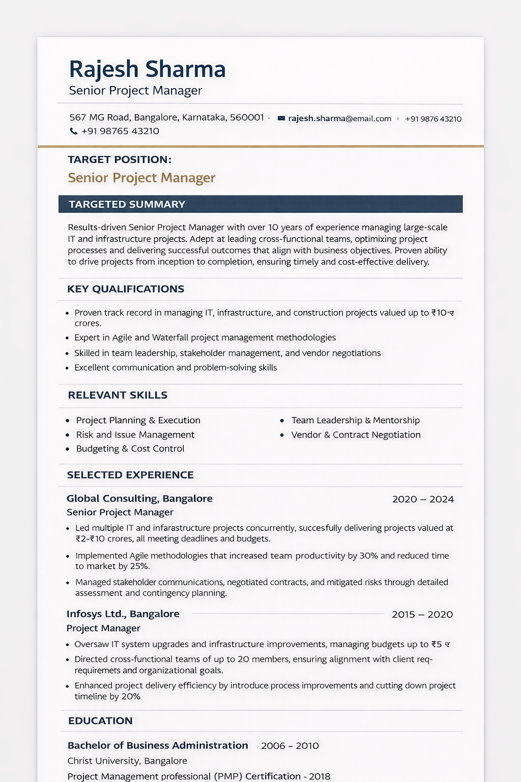 Your resume will pass ATS filters and attract recruiters with its professional presentation and keyword optimization.